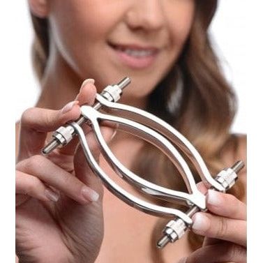 This clamp lets you spread those lips wide open, giving you access to their clitoris and vagina.