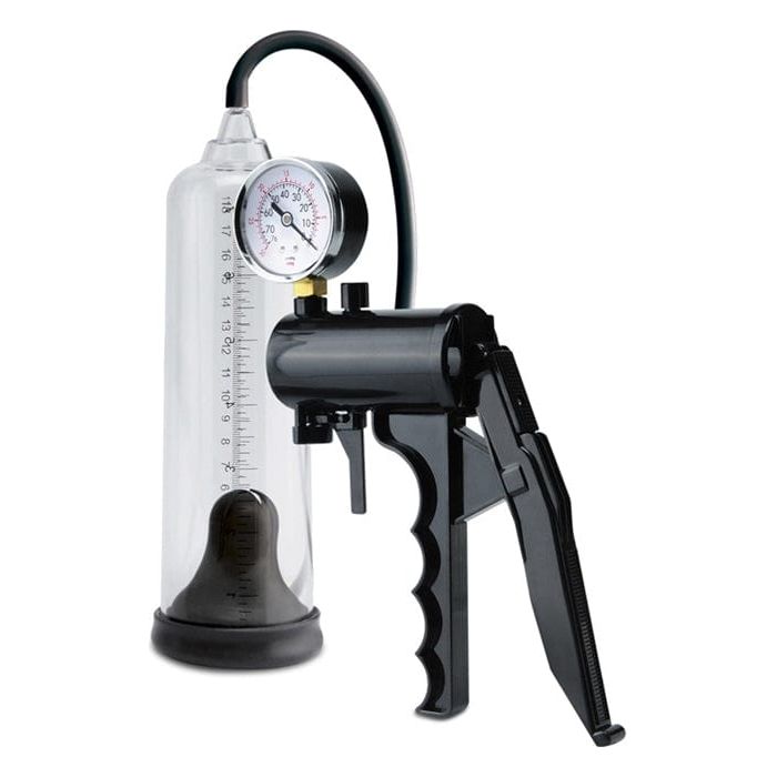 The translucent suction cylinder lets you see your penis grow larger and wider with each pump stroke, while an intuitive gauge shows you the pressure.
