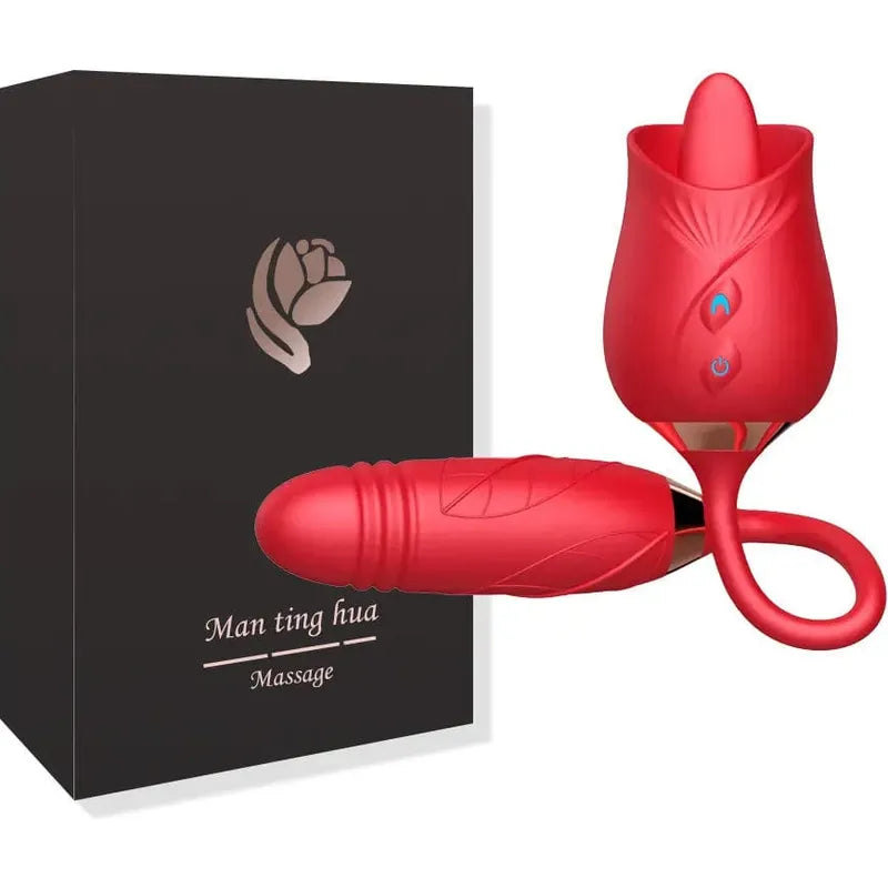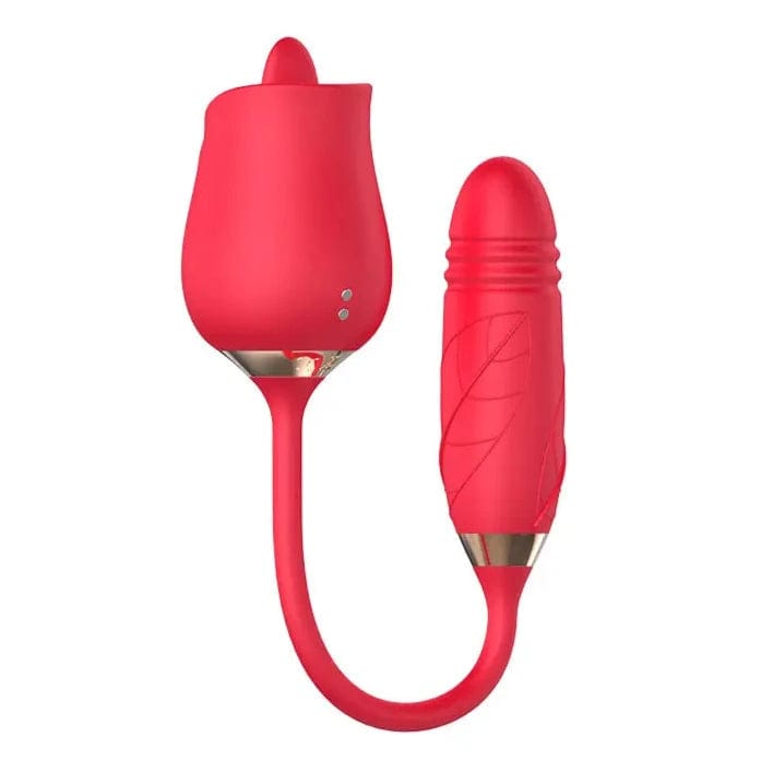 Double your pleasure with this special Licking Rose With Thrusting clitoral vibrator from Secwell